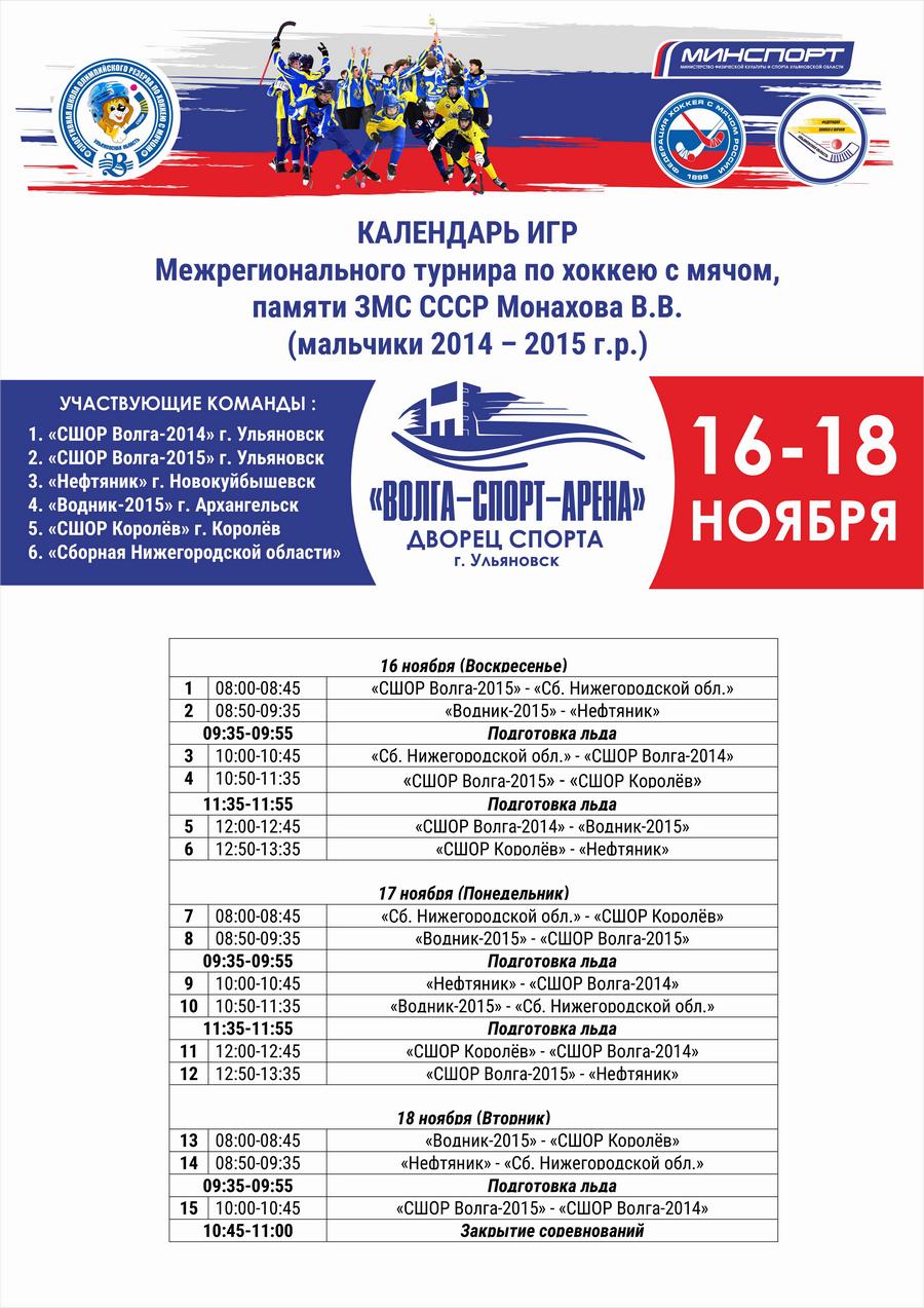 В Ульяновске с 16 по 18 ноября 2025 года пройдет Межрегиональный турнир по хоккею с мячом, памяти ЗМС СССР Монахова В.В.
